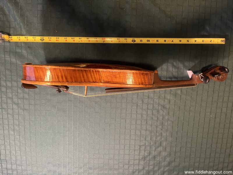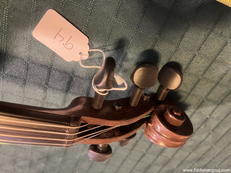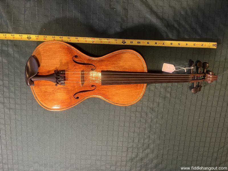 This five string, full-size fiddle comes with gear pegs, handmade chin, rest a case, and a bow.