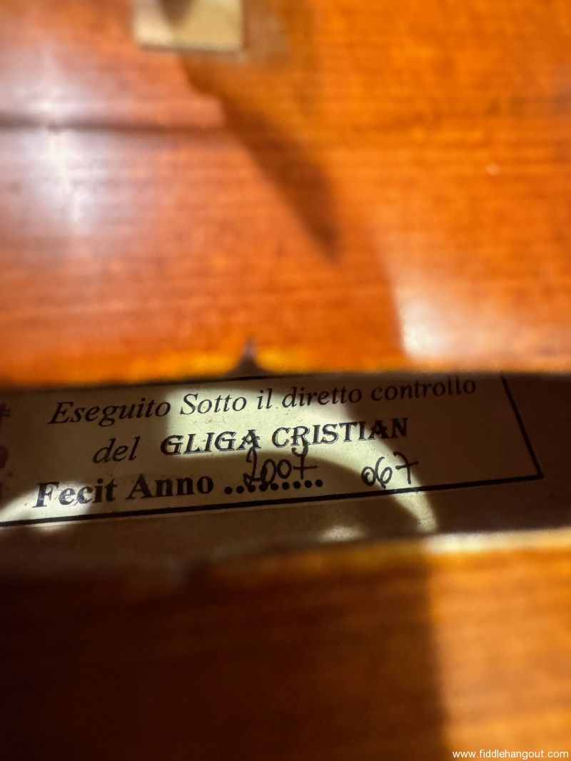This is a 4/4 Gama fiddle, vintage 2007, made in the in the workshop of Romanian luthier Cristian Gliga. It's well set-up and ready to play, appropriate for an intermediate player looking for a European-made instrument, or as a reliable backup for a professional. My daughter played this in college as a violin major. Since then it's seen mostly duty in old time circles. The instrument has warmed up nicely over the years and has a strong but pleasing tone suitable for old time, irish, bluegrass and more. Youtube link below.