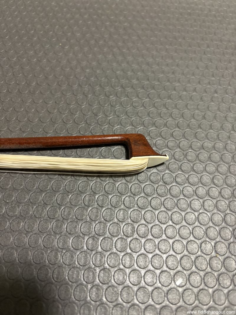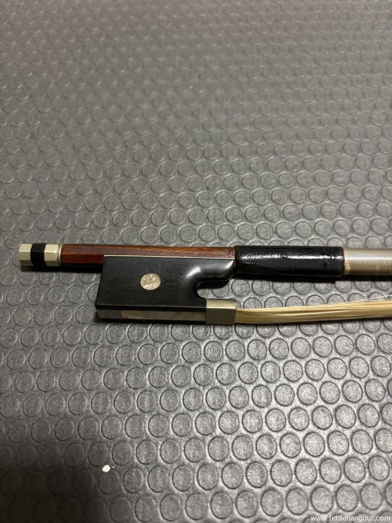 Very nice pernambuco nickel mounted bow. Recent sterling silver and leather. Fresh hair. 59g on my kitchen scale.