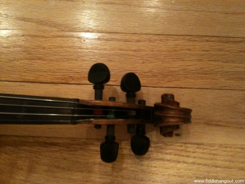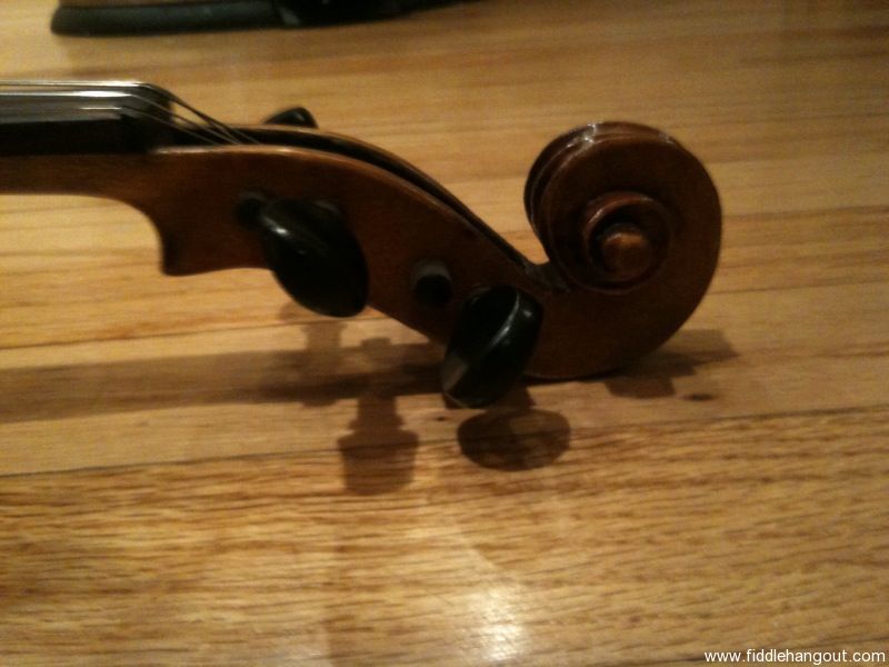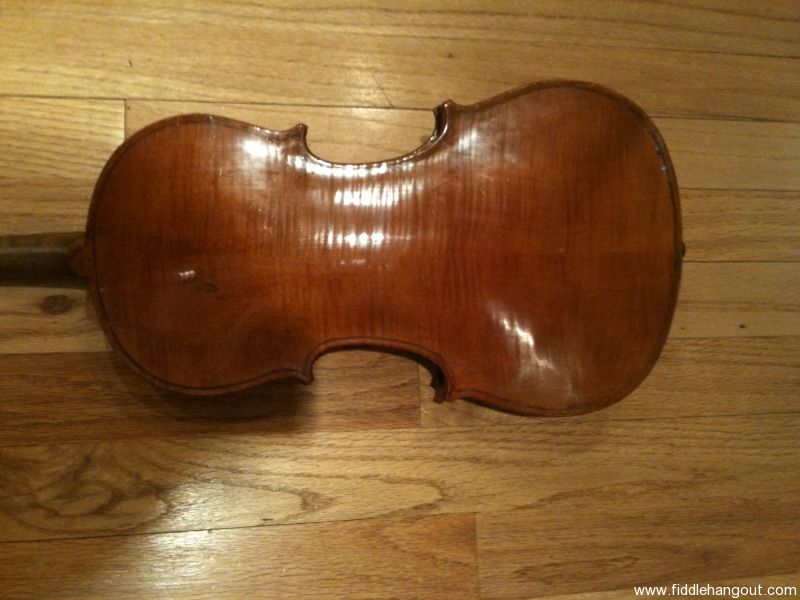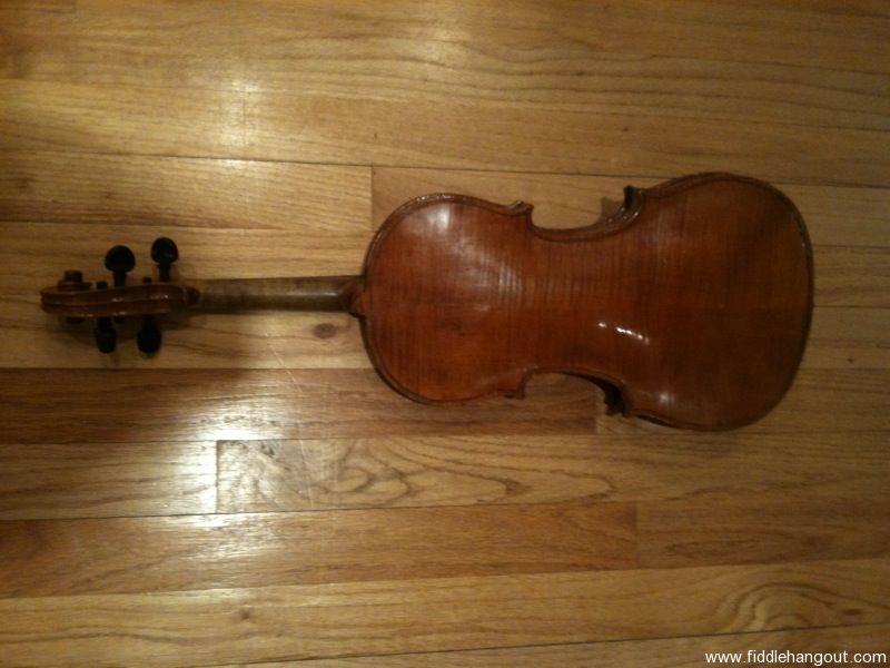 This fiddle was purchased from Royce (FHO member and fiddle dealer) in 2007 for $550. It has no label, but Royce thought it was likely made around 1910 in Dresden. After receiving it, I had it professionally set up, including new bridge, soundpost, peg fittings. It's a great sounding fiddle. I'm selling because I just had my great grandfather's fiddle restored, and so can't justify keeping this one around any longer!