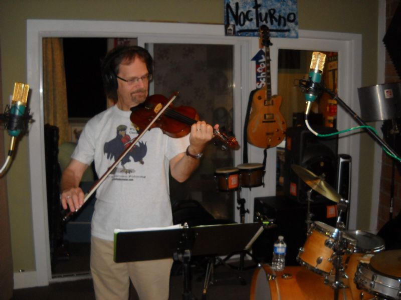 Here I am in the recording studio, recording the tunes for the CD that is included with my recently published book 'Learn to Play Irish Trad Fiddle.' The CD includes all 50 tunes from the book, played at comfortable tempos. A student can learn classic Irish Trad tunes reading the music in the book, playing along with the CD by ear, or a combination of both!