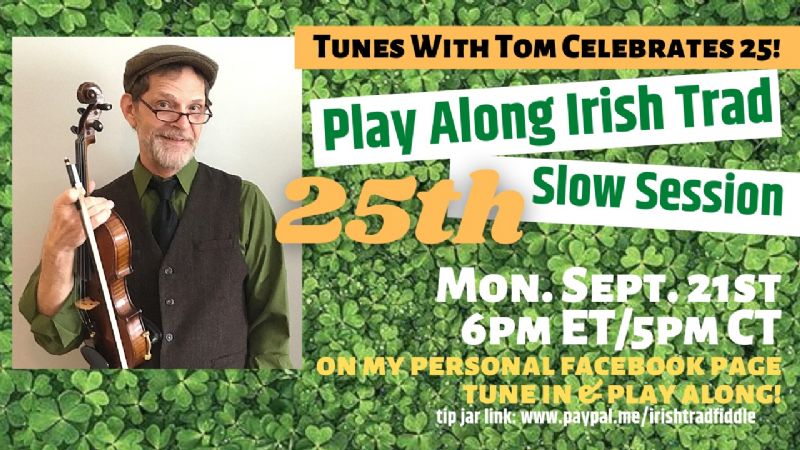 Most every Monday you'll find me live streaming on my personal Facebook page, leading a Play Along Irish Trad Slow Session. I invite everyone to tune in, grab your fiddle, and play some tunes along with me, from my living room to yours.